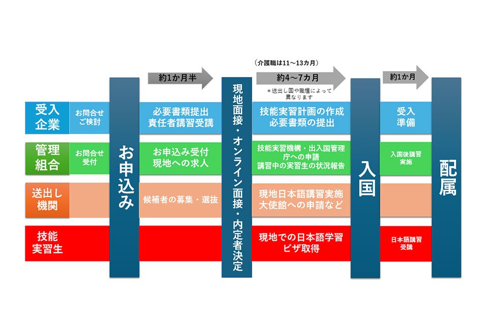 受け入れ企業様の外国人実習生受入までの流れ